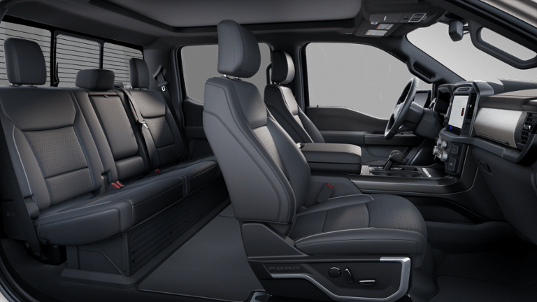 Lariat Black Appearance Package: Black Grille; ActiveX Trimmed Bucket Seats; Black Exterior Badging; Gray Box Side Decal; Body-Color Front and Rear Bumpers; Body-Color Skull Caps and Door Handles; Black Taillamp Bezels; Matte Black Tailgate F-150 Decal; Dark Interior Appliques. Bed Utility Package: 4 Pickup Box Tie-Down Plates; 6" Extended Running Boards; LED Box Lighting; Pro Access Tailgate; Power Tailgate. Equipment Group 502A High: Ambient Lighting - Ice Blue Color Only; Electronic 10-Speed Automatic Transmission; 7. 100 lbs Payload Package GVWR; B&O Unleashed Sound System by Bang & Olufsen Radio; 2nd Row Heated Seats; 6" Extended Angular Bright Anodized Step Bar; 5.0L V8 Engine; Power-Sliding Rear Window; Heads-Up Display; Illuminated Driver and Passenger Visors; 275/60R20 All-Terrain Tires. Mobile Office Package: Wireless Charging; Partitioned Lockable Rear Storage; Console Worksurface. Tow/haul Package: Integrated Trailer Brake Controller. Twin Panel Moonroof. Max Tow Electronic Locking W/3.73 Axle Ratio. Wheel Well Liner. **Equipment listed is based on original vehicle build and subject to change. Please confirm the accuracy of the included equipment by calling the dealer prior to purchase.**