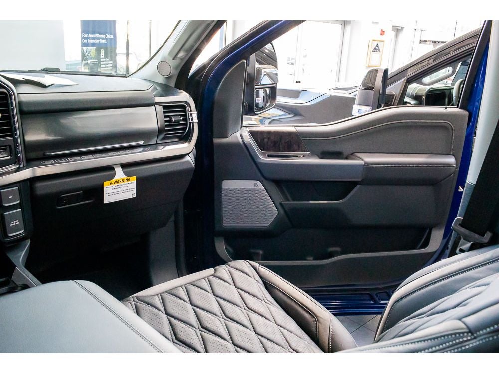 Black Appearance Package: Rear Wheel Well Liners; Black Painted Front Grille Surround; Ebony Black Painted Mirror Caps; Tough Bed Spray-In Bedliner; Body Color Front and Rear Bumpers; 6" Ebony Black Angular Running Boards. Lariat Premium Package. Ford Co-Pilot 360 Assist 2.0: Pre-Collision Assist; Post-Collision Braking; BLIS with Cross-Traffic Alert; Lane-Keeping System; Front and Rear Parking Sensors; Automatic High Beam; Adaptive Cruise Control with Stop-And-Go. Order Code 608A: 18" Bright Machined and Carbonized Gray Aluminum Wheels; Front ActiveX Trimmed 40/console/40 Seats; LT275/65Rx18E BSW A/S Tires; B&O Sound System by Bang and Olufsen. Twin Panel Power Moonroof. High Capacity 11.6" Axle Upgrade Package. Tough Bed Spray-In Bedliner. Power-Sliding Rear-Window with Defrost. Electronic-Locking with 3.55 Axle Ratio. Vehicle Integration System 2.0. Argon Blue Metallic. Upfitter Switches (6). Rear Wheel Well Liners. **Equipment listed is based on original vehicle build and subject to change. Please confirm the accuracy of the included equipment by calling the dealer prior to purchase.**
