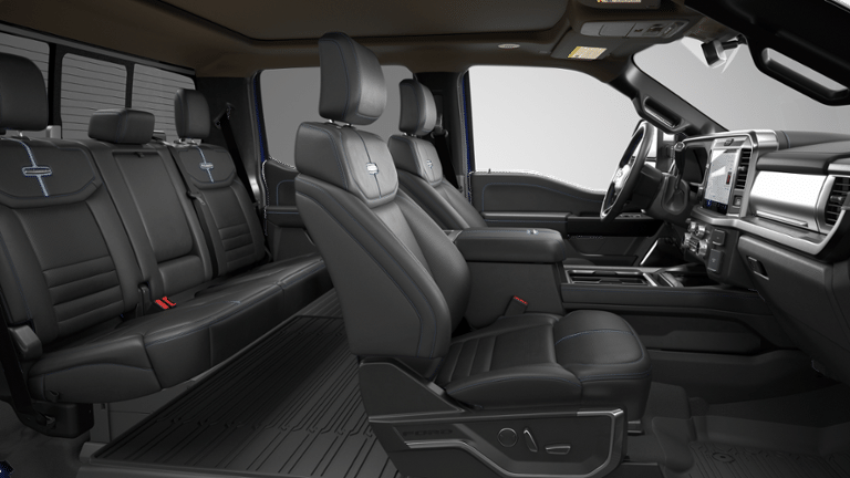 FX4 Off-Road Package: Transfer Case and Fuel Tank Skid Plates; Hill Descent Control; Off-Road Specifically Tuned Shock Absorbers; Unique FX4 Off-Road Box Decal. Order Code 713A: TorqShift 10-Speed Automatic Transmission; 20" Bright Machined and Painted Aluminum Wheels; Unique Platinum Leather 40/console/40 Seats; LT275/65Rx20E BSW A/T (4) Tires; B&O Unleashed Sound System by Bang & Olufsen Radio. Twin Panel Power Moonroof. Pro Power Onboard - 2kW. 5th Wheel/gooseneck Hitch Prep Package. SecuriCode Keyless Entry Keypad (driver's Side). Electronic-Locking with 3.31 Axle Ratio. Argon Blue Metallic. Argon Blue Metallic. Upfitter Switches (6). All-Weather Floor Mats. **Equipment listed is based on original vehicle build and subject to change. Please confirm the accuracy of the included equipment by calling the dealer prior to purchase.**