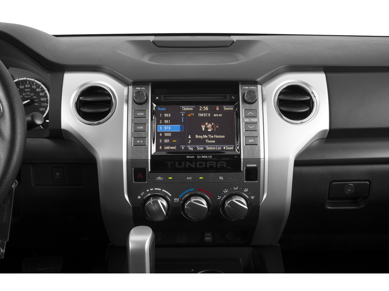 - Radio: Entune Audio Display AM/FM/HD w/CD Player -inc: MP3/WMA playback capability, high-resolution 7" touch-screen display, auxiliary audio jack, USB 2.0 port, iPod connectivity and control, iTunes Tagging, traffic and weather, Bluetooth hands-free phone capability, phone book access, voice recognition and music streaming, SIRIUSXM Satellite Radio, 90-day free trial