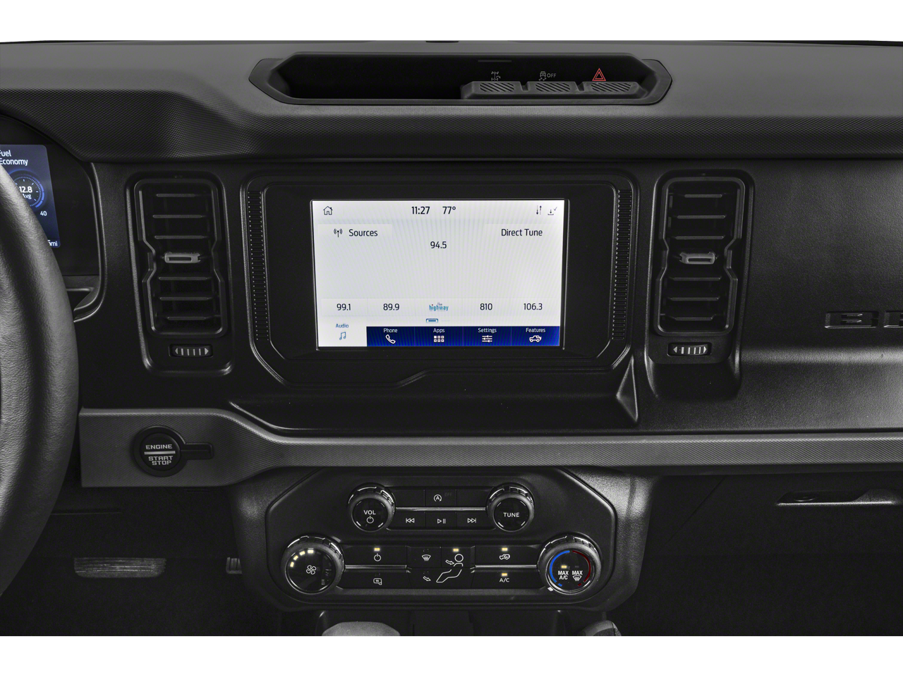 Equipment Group 222A Mid Package: 17" Carbonized Gray-Painted Aluminum Wheel; Rear Parking Sensors; Power Outlet - Back Side of Center Floor Console; 2.3L EcoBoost I-4 Engine; Front Row Heated Seats; Auto-Dimming Interior Rearview Mirror; Driver and Front Passenger Illuminated Sliding Visor Vanity Mirrors; 5. 920 lbs GVWR; AM/FM Stereo; Dual-Zone Electronic Automatic Temperature Control; Enhanced Voice Recognition; Connected Navigation; P255/75R17 A/T Tires; Ambient Footwell Lighting; Remote Start System; Cloth Bucket Seats; 2-Door Intelligent Access with Lock/unlock. Ford Co-Pilot360: Auto High-Beam Headlamps; Rear View Camera; Pre-Collision Assist with Automatic Emergency Braking; Blind Spot Information System (BLIS); Lane-Keeping System. 4.27 Final Drive Ratio with Rear Locking Differential. LED Signature Lighting. Removable Hoop Step. Auxiliary Switches. Keyless Entry Keypad. **Equipment listed is based on original vehicle build and subject to change. Please confirm the accuracy of the included equipment by calling the dealer prior to purchase.**
