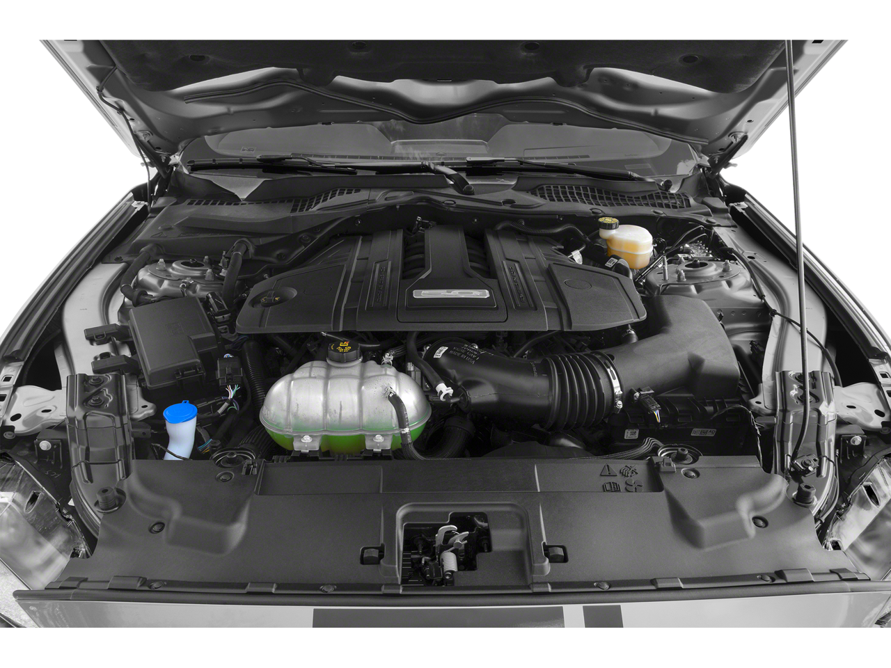 Mustang Nite Pony Package: Black Decklid Spoiler; Black Mirror Caps; Black GT. 5.0 and Pony Badges; Black Grille. Equipment Group 300A: 18" X 8" Machined-Face Aluminum Wheels; Cloth Bucket Seats; 5.0L Ti-VCT V8 Engine; 235/50ZR18 BSW AS Tires; AM/FM Stereo. **Equipment listed is based on original vehicle build and subject to change. Please confirm the accuracy of the included equipment by calling the dealer prior to purchase.**
